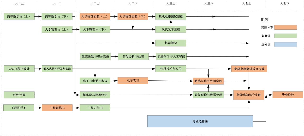 培养目标:适应国家经济与科技发展需求,围绕智能感知工程专业集成电路封装与测试领域的人才需求,培养具有社会责任感、工程职业道德、终身学习、团队合作与沟通等可持续发展潜能及素质,系统掌握智能感知领域专业基础理论和专业知识,具有创新精神和工程实践能力,能够在智能感知领域及其他相关工业,从事科研、设计开发、管理等方面工作的德、智、体、美、劳全面发展的复合型新工科高级人才。以智能感知技术为核心,基于数学、物理、光学、电子学、智能材料和人工智能等基础理论,以及智能感知、信号处理、信息融合、人工智能等专业知识,依托学院在智能传感技术、多维视觉传感、传感信号处理的优势学科方向,强化创新能力和工程实践能力训练,培养学生运用专业知识解决智能感知工程领域内复杂工程问题的能力。