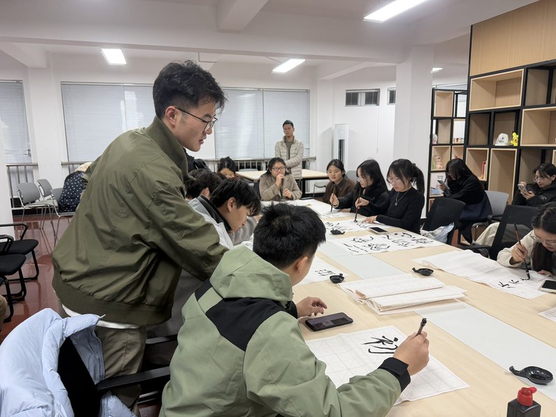 为弘扬中华优秀传统文化,提升研究生人文素养与美学情操,2025年11月28日晚7时,“墨韵研途·笔润初心”研究生书法美育实践活动在新禧公寓4号楼二层活动室成功举行。本次活动由仪器学院和管理学院共同主办,电气学院协办,吸引了众多研究生同学参与。