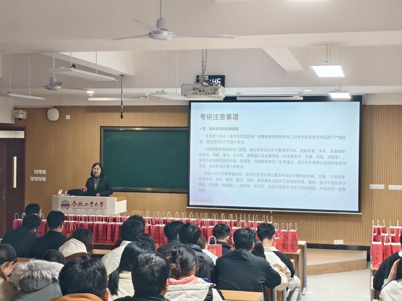 在研究生入学考试即将来临之际,12月11日,仪器学院在屯溪路校区西二102举办“‘仪’路相伴,一‘研’为定”考研助航活动。学院副院长成娟、党委副书记兼纪委书记刘萍、全体2022级考研学生及辅导员近200人参加本次活动。