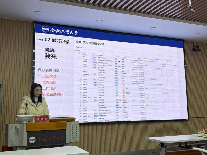 王卓妍则立足宏观与规划。她建议同学们根据自身选择,结合工科就业方向进行精准求职定位,强调简历内容与岗位需求的高度匹配。此外,王卓妍分享了多渠道获取招聘信息的方法,同时提醒同学们在求职高峰期保持良好心态,强调“什么时候开始都不晚”。