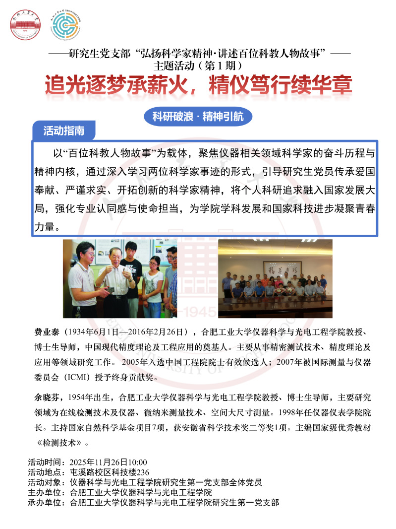 仪器学院研究生党支部“弘扬科学家精神・讲述百位科教人物故事”主题活动第一期预告