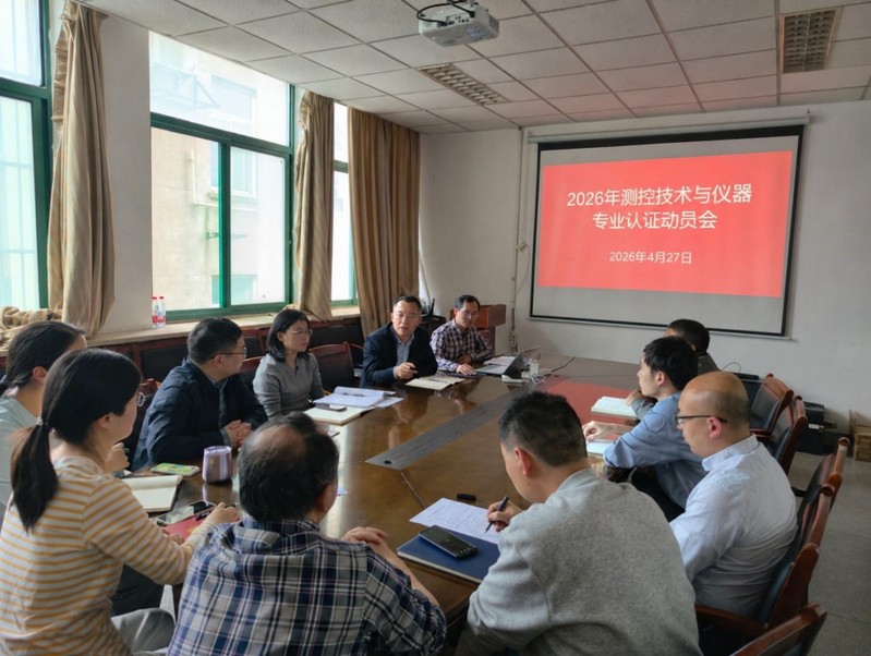 2026年4月27日下午,测控技术与仪器专业认证再动员会和线上培训会在科技楼316会议室举行,会议由测控系主任潘成亮教授主持,教学副院长成娟教授、测控系党支部书记李瑞君教授、王永红教授,及认证核心成员教师出席。
